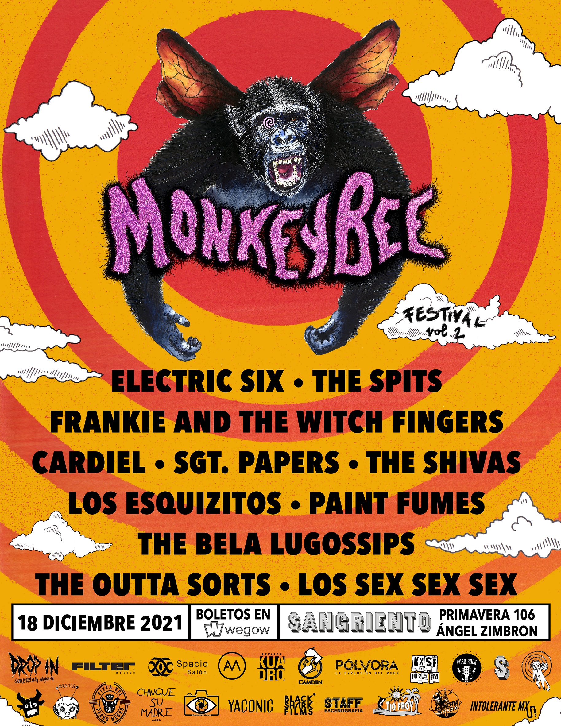 La realización del MonkeyBee Festival está programada para el 18 de diciembre del 2021 en Sangriento, los boletos que se hayan adquirido seguirán siendo válidos y sin cargos adicionales (a la venta a través de WeGow por $550.00).